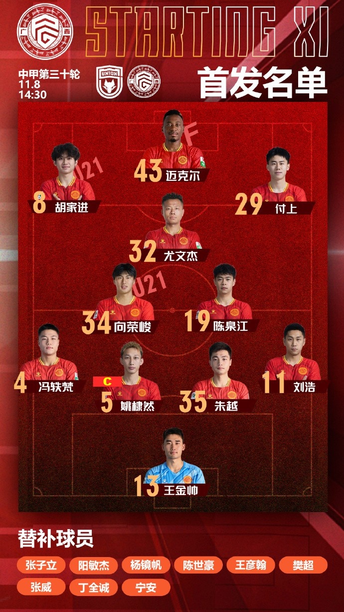 2025华润饮料中甲联赛第30轮,广西平果国晶客战陕西聚首首发名单
