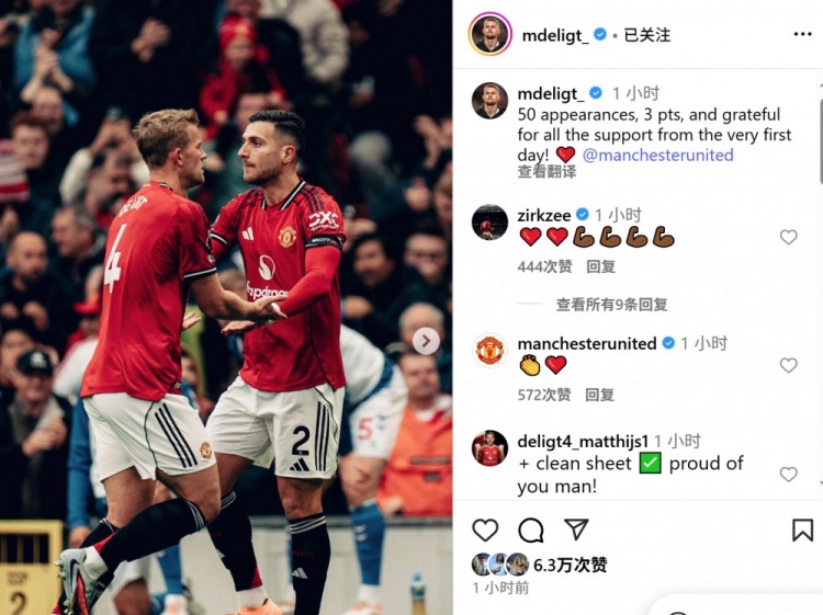 曼联后防铁闸!德里赫特:50次出场,拿下3分,感谢扫数撑执!