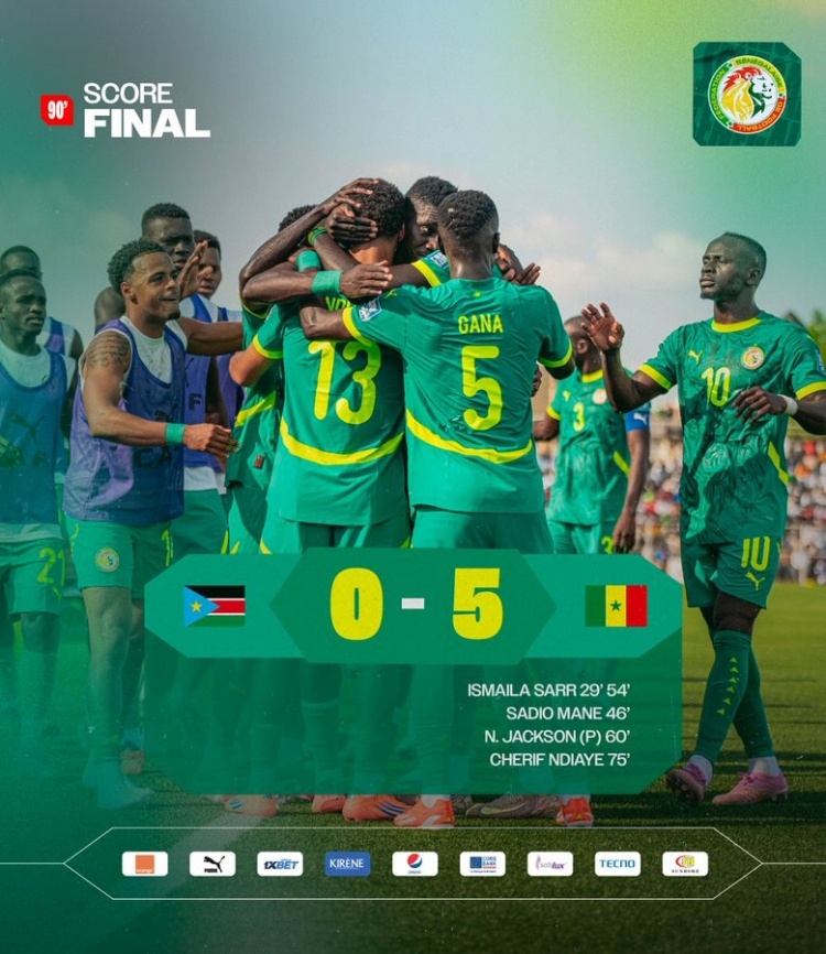 纵贯寰球杯在望!世初赛:塞内加尔5-0大捷南苏丹,萨尔梅开二度