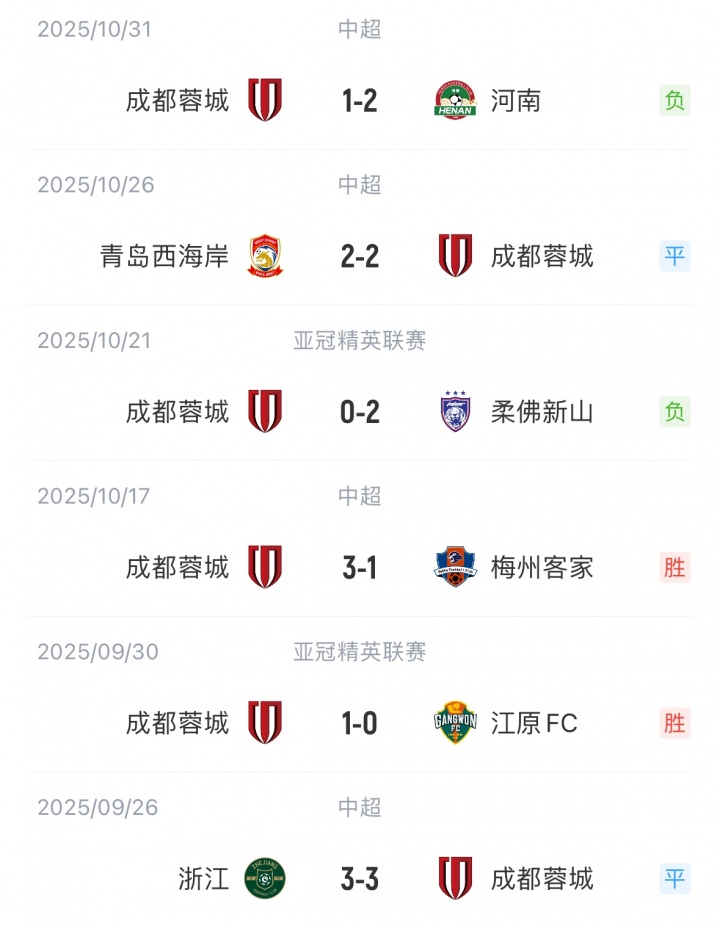 【蓉城近期战绩】