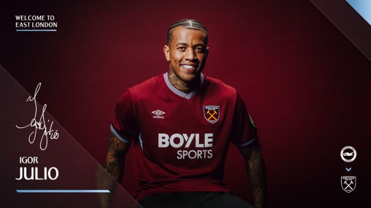 当天西汉姆官方秘书,租赁布莱顿的27岁巴西中卫伊戈尔1个赛季。