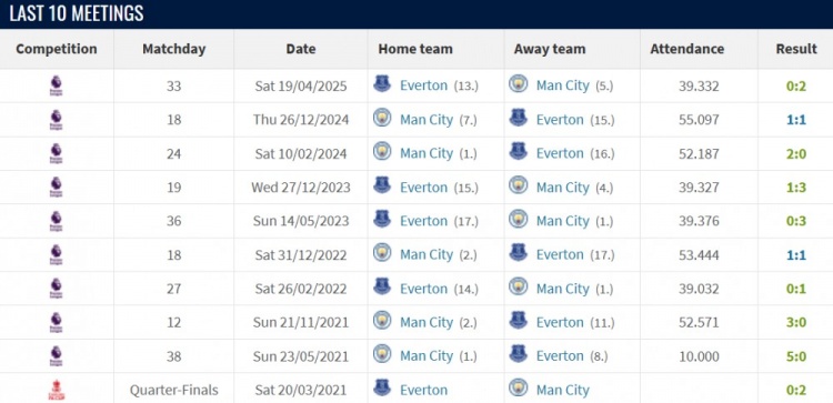 曼城vs埃弗顿战绩:近10场曼城8胜2平保捏不败,进23球失3球