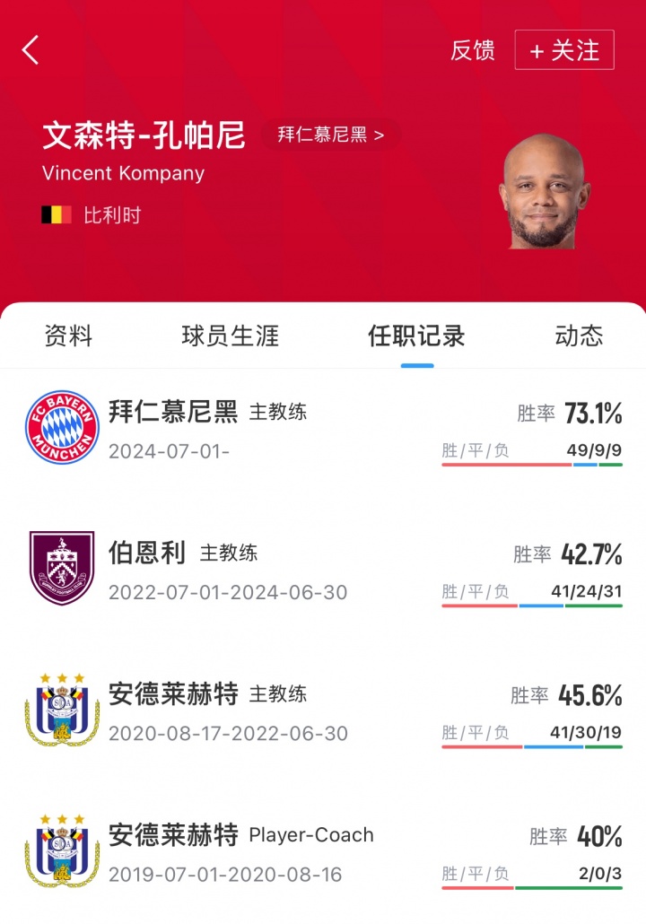 孔帕尼现年39岁,比利时籍证据,他于2024年7月成为拜仁主帅,带队67场49胜9平9负,他与拜仁的原有协议要握续到2027年,这次续约使得他在拜仁的执教生活延伸了两年。本赛季,拜仁开局获得11连胜,当今领跑德甲、欧冠积分榜。