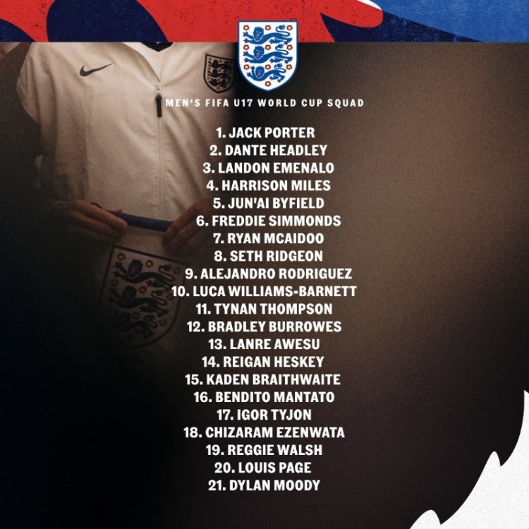 10月21日讯 2025年U17男足宇宙杯将于11月3日至27日在卡塔尔举行,本届赛事将初度扩军至48支球队。英格兰U17公布参赛名单。