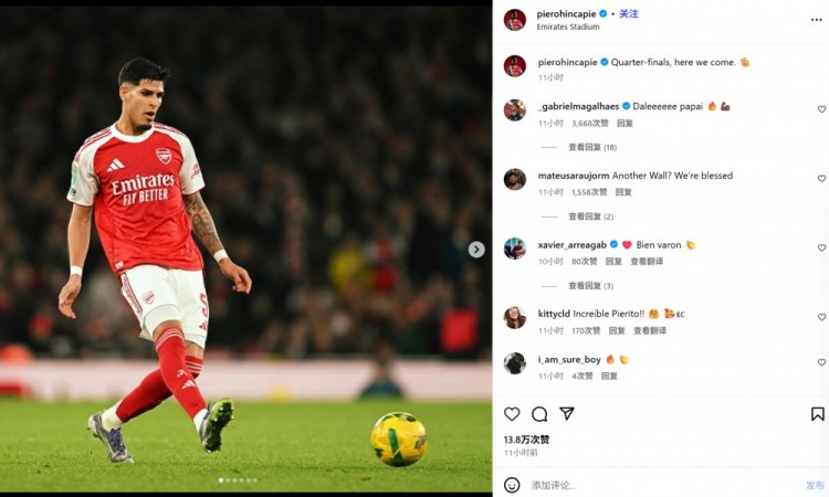他也在赛后通过社媒晒出我方的比赛照并配文:“八强战,咱们来了!”队友加布里埃尔也现身考虑区饱读吹谈:“加油!”