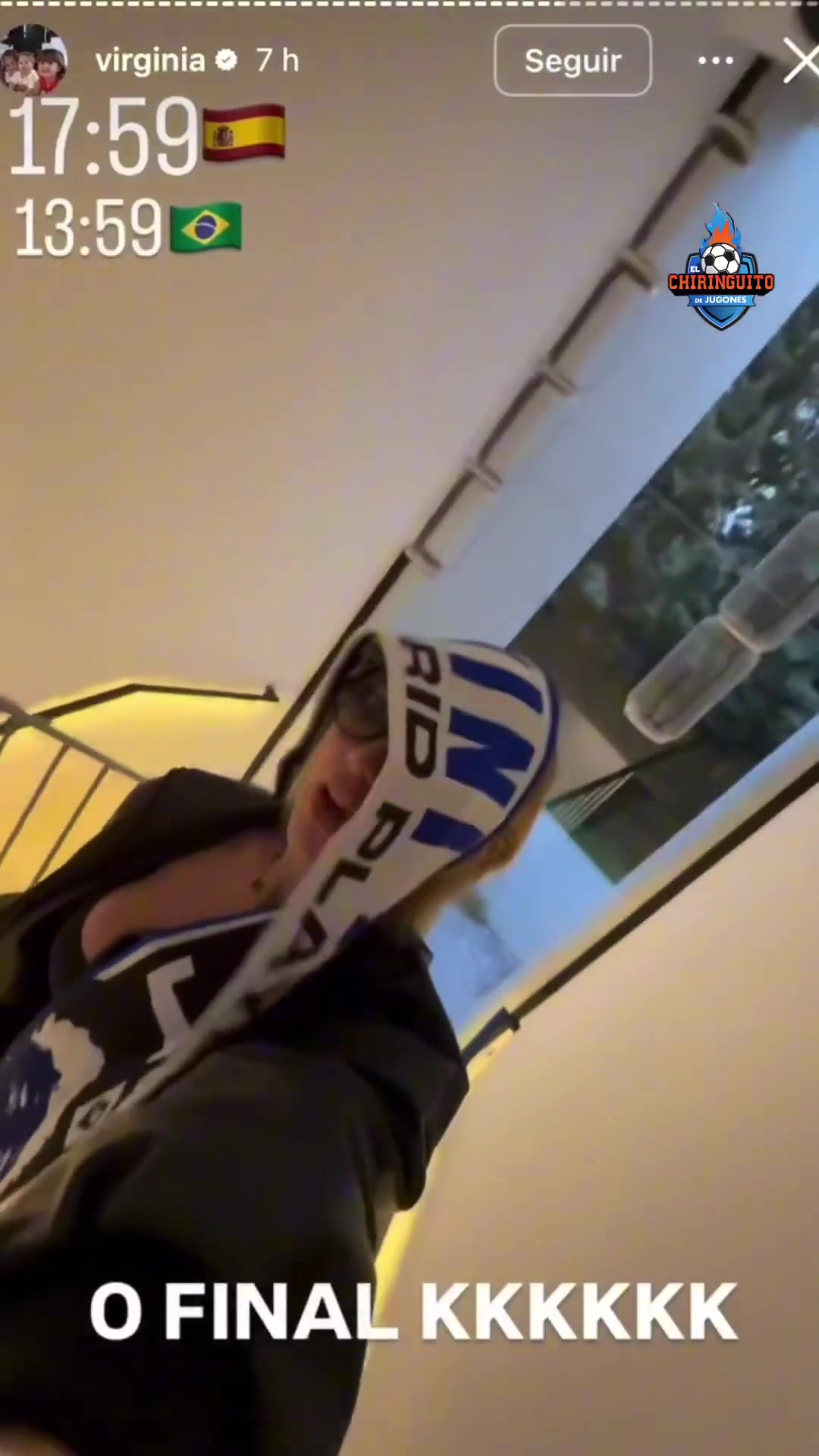 11月1日讯 维尼修斯的女友弗吉尼亚更新社媒动态,晒出面戴皇马领巾整蛊维尼修斯的视频。