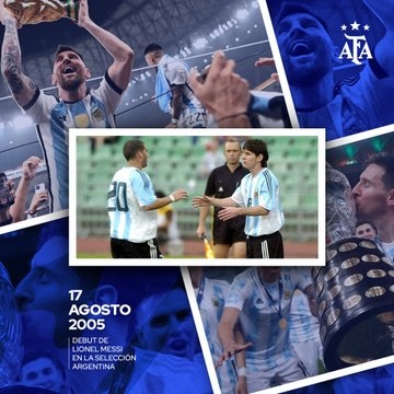 2005年8月17日,梅西在阿根廷对阵匈牙利的友谊赛中替补出场,完成个东说念主在国度队的首秀,于今已昔时20年本领。