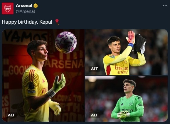 凯帕今天迎来31岁寿辰,阿森纳官推送道贺:寿辰景况!