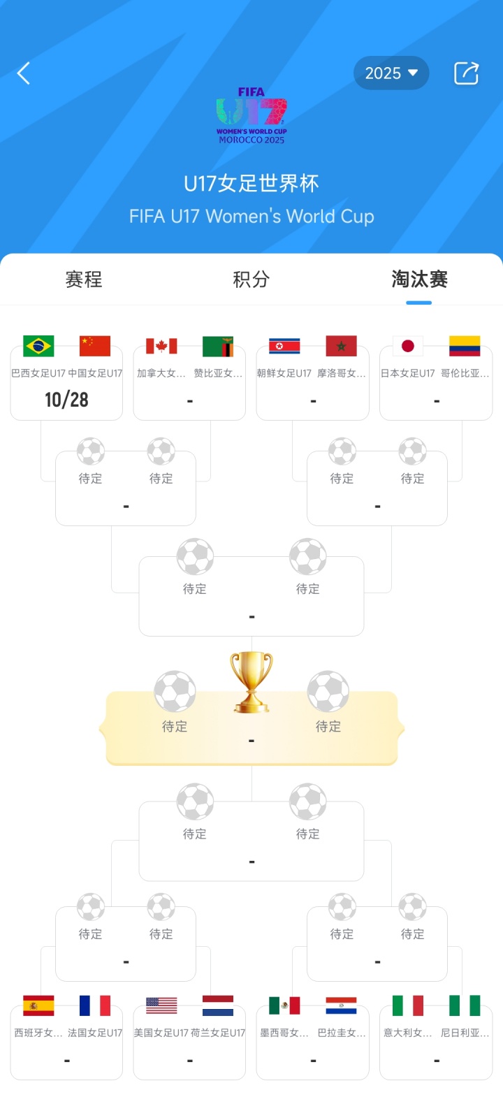 在此前的小组赛中,中国U17女足2胜1负小组第2出线,巴西U17女足则是1胜1平1负排行A组第2;本场比赛的胜者将在1/4决赛中对阵加拿大女足与赞比亚女足的胜者。