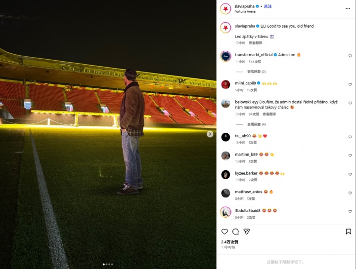 捷克球队布拉格斯拉维亚整活,北京技术今天凌晨晒出梅西的P图同期写说念:很得成见到你,老一又友,里奥重回伊甸园通顺场(布拉格斯拉维亚主场)。
