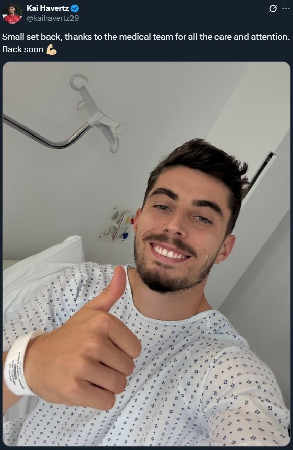 哈弗茨写谈:“小小勤恳,感谢医疗团队的精心管制,很快归来💪🏼”